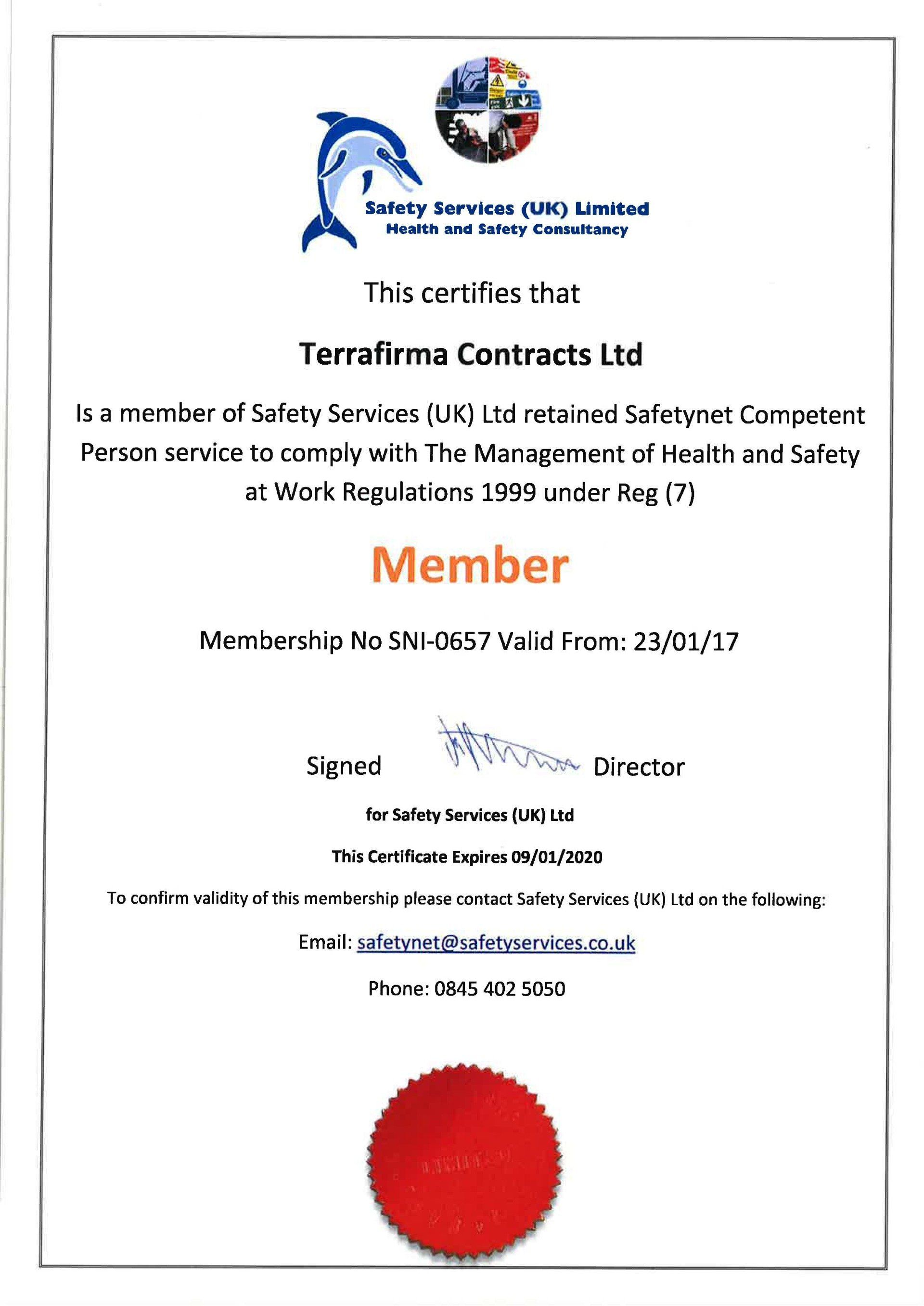 Here at Terrafirma Contracts safety is paramount, as we want to ensure that all work carried out meets the very latest legislation and guidelines.